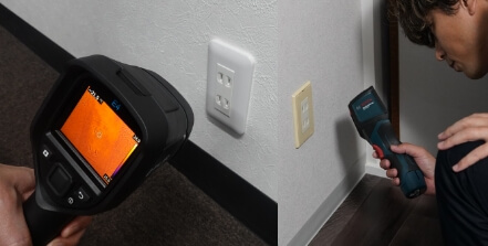 サーモグラフィーカメラを使用し、異常な熱が発せられていないかを調べます。